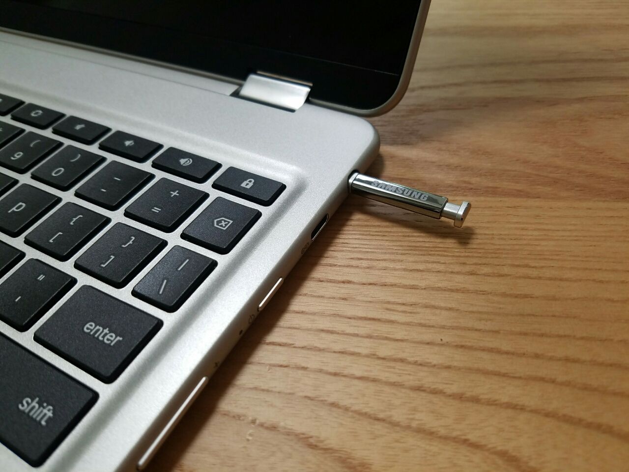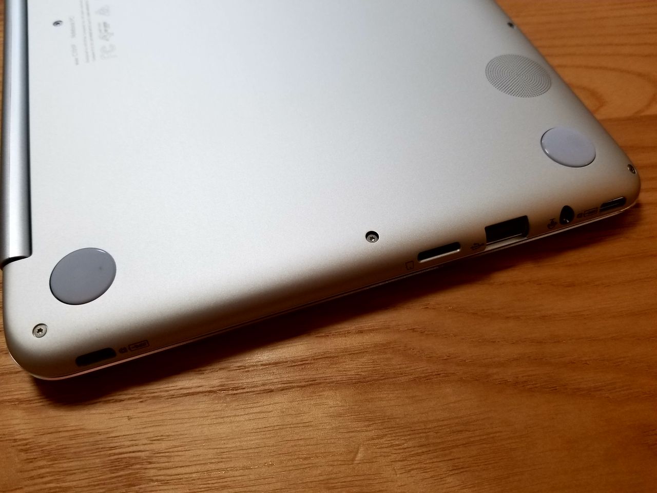 本体向かって右側にはUSB Type-Cポートが2つと、USB2.0ポートも1つ。ここが最大の変更となっています。C100PAではUSB2.0が2つと、HDMIポートが搭載されていましたが、C101PAではUSB Type-Cポートでの映像出力に対応しています。あとはmicroSDカードスロットとイヤフォン用の出力ポートがあります。 マニュアル上では重量に関しては約900gとの記載でしたが、実測してみたところ910gと表示されました。
